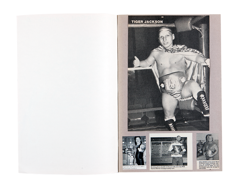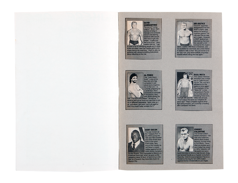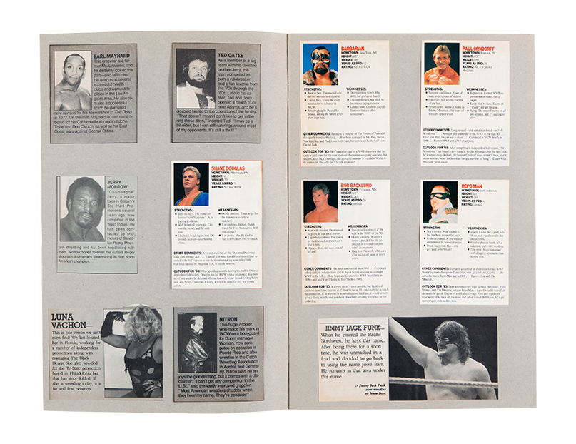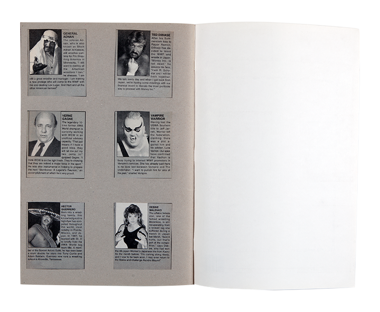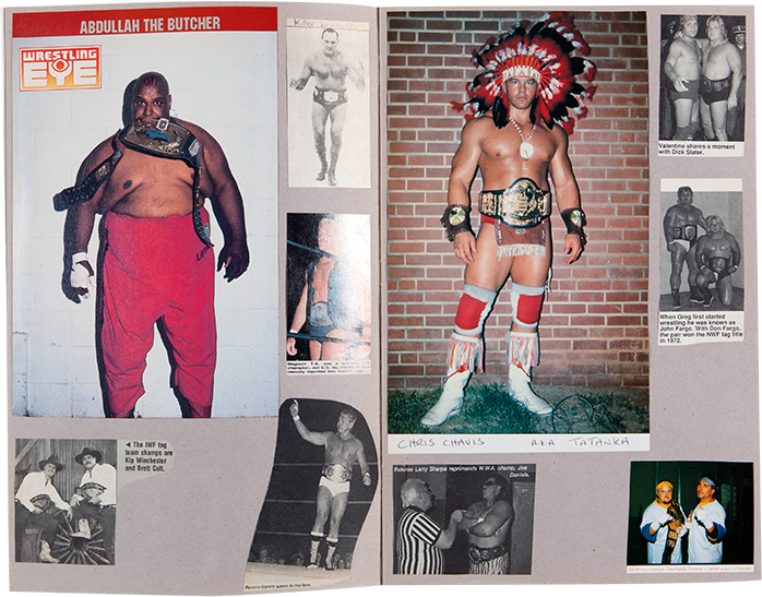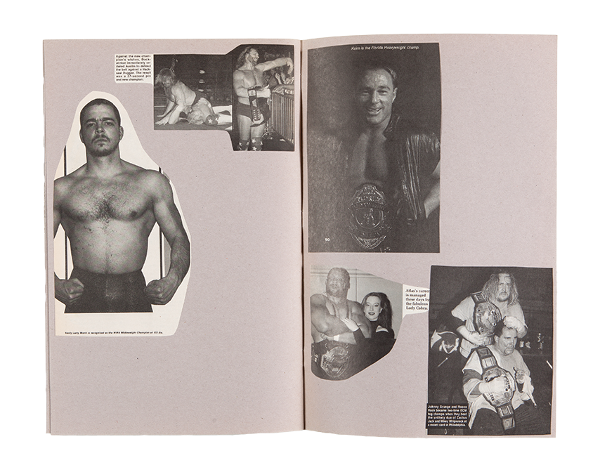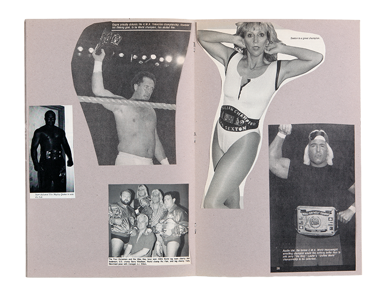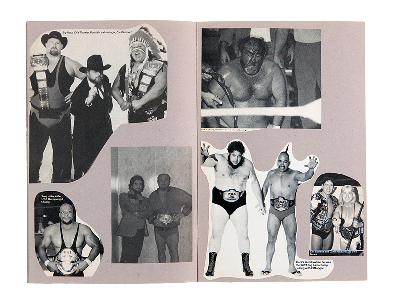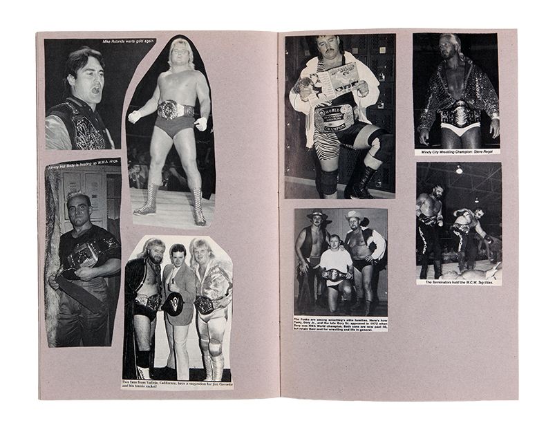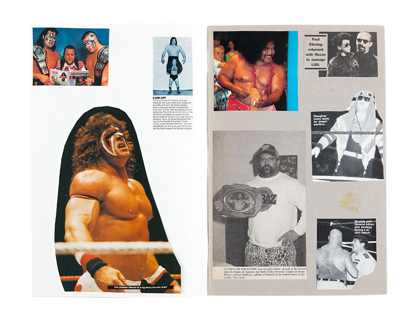 Three wrestling scrapbooks made by a WWF (World Wrestling Federation) fan, entitled “Memories 2” (28 pages); “Where Are They?” (20 pages); and “Federation Champs 4” (28 pages). Various offset black-and-white and color press clippings. Each measures 24,8 x 37,6 cm.